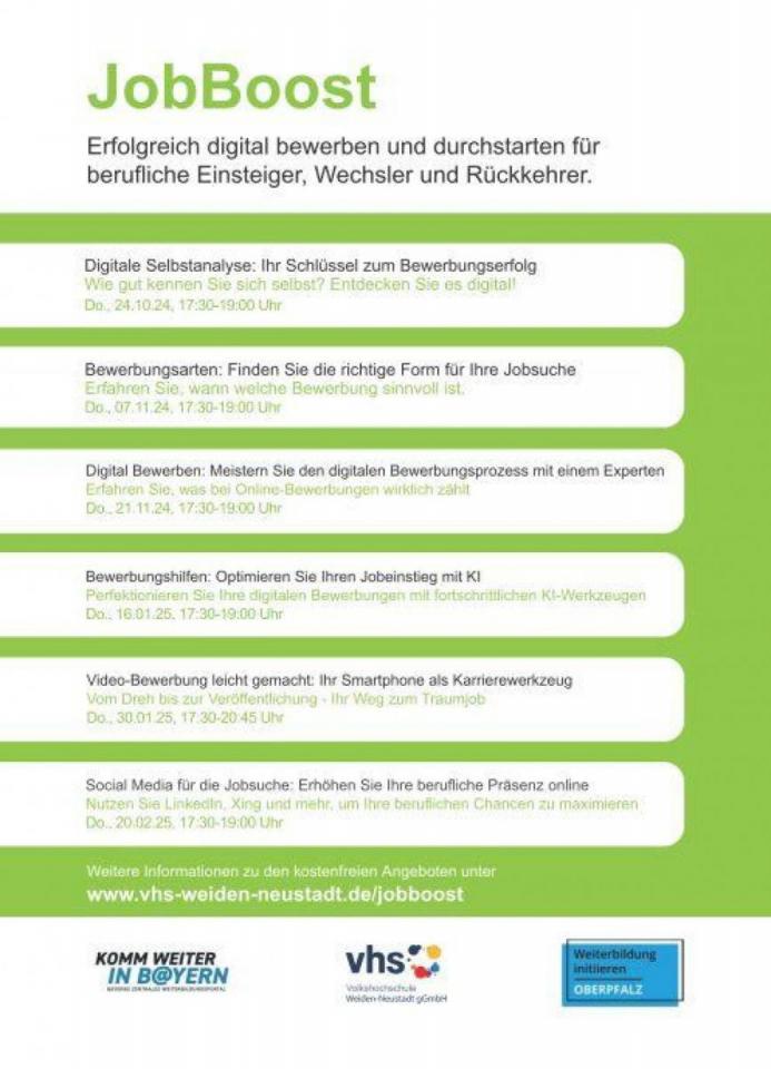 Weitere Infos gibt es auch im Internet: www.vhs-weiden-neustadt.de/jobboost