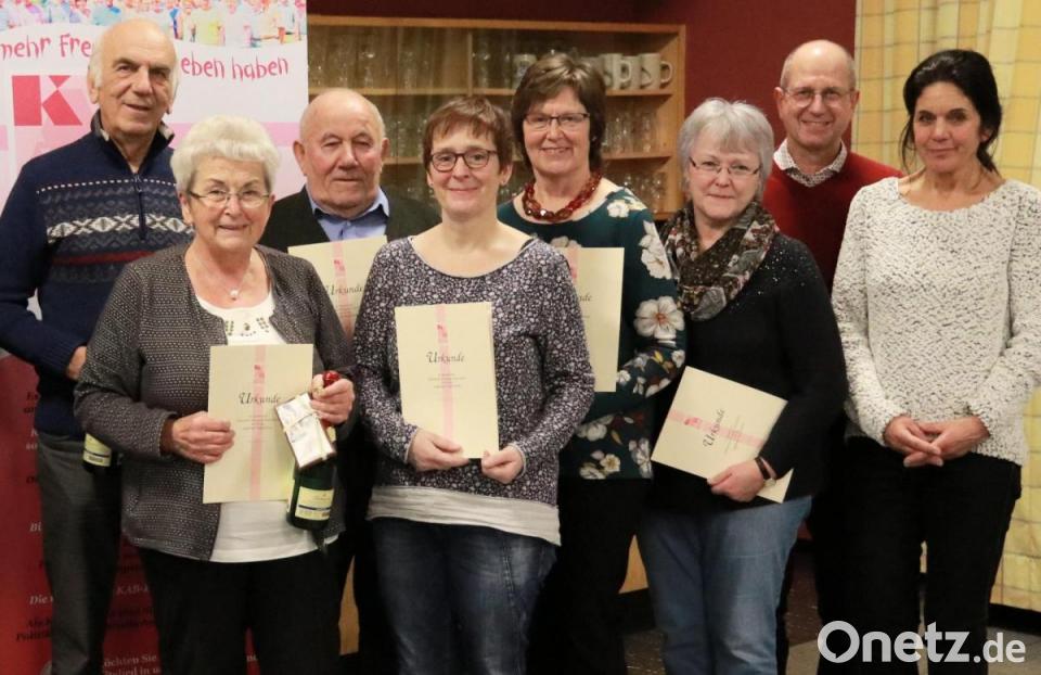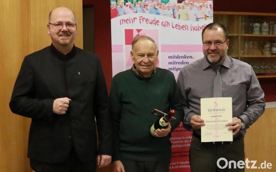 Der langjährige Ortsvorsitzende Herbert Ditz wurde für sein Engagement zum Ehrenvorsitzenden ernannt. Heinz Pohl bekam eine Urkunde für 60-jährige Treue zur KAB. Für 40 Jahre wurden Margaret Eckert, Gisela Feneis, Agnes Hartwig, Hans Koller, Rita Schell und Erich Walberer geehrt. Für 25-jährige Mitgliedschaft zeichneten Träger und Dekan Lukas Elisabeth Nickl-Träger aus.