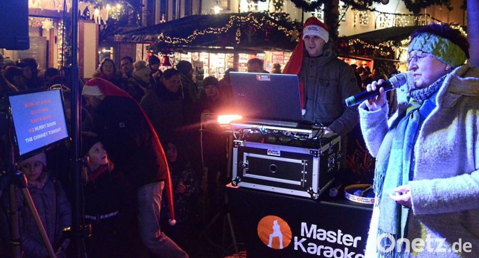 Einen Versuch war es allemal wert. Einmal Karaoke auf dem Weidener Christkindlmarkt. Gesangliche Selbstversuche auf der Bühne, anstatt passiv davor nur Glühwein zu konsumieren. Von wegen Zurückhaltung. Das Master-Karaoke-Team um Benny Redinger hatte sogar Wartelisten. Und dabei traten ganz tolle Ergebnisse zum Vorschein. Egal ob „Hallelujah“ von Leonard Cohen oder "Santa 'Baby" von Kylie Minogue: Viele der Interpreten, die ihre Texte vom Monitor ablasen, hatten Gold in der Kehle. Viele, nicht alle. Die Freiwilligen hatten 30 000 Titel zur Auswahl: Pop, Rock, Christmas von den Sechzigern bis heute. Nicht nur Erwachsene sangen zum Beispiel „Skandal im Sperrbezirk“. Auch Kinder standen mit „Jingle Bells“ am Mikrophon und gaben ihr Bestes. Über einen bunten, musikalischen Abend freute sich Initiatorin, Eventmanagerin Gertrud Wittmann.