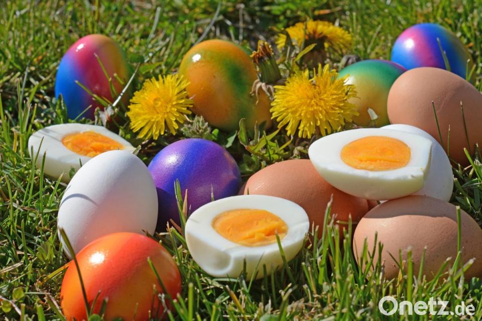 - Gefärbte, gekochte Eier sind bei Zimmertemperatur rund 2 Wochen, im Kühlschrank mindestens 4 Wochen haltbar. Fertig gekaufte bunte Eier halten sich meist länger, weil sie zusätzlich mit einem Lack auf der Farbe geschützt sind.