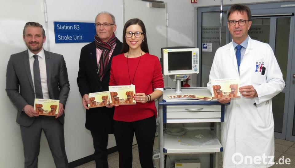 In Deutschland erleiden jährlich rund 250 000 Menschen einen Schlaganfall und werden plötzlich aus dem Alltagsleben gerissen. Für die spezialisierte Versorgung von Schlaganfallpatienten wurde am Klinikum Weiden vor einigen Jahren eine Stroke-Unit eingerichtet. Um Kindern dabei zu helfen, zu verstehen, was passiert ist und warum Opa oder Oma plötzlich nicht mehr das machen können, was sie bisher konnten, wurde in Zusammenarbeit mit Jennifer Hetzel das Kinderbuch "Keine Kirschen für Opa Bär" illustriert und erstellt, das zukünftig den kleinen (und großen) Angehörigen von Patienten zur Verfügung gestellt werden wird. Chefarzt Dr. Michael Angerer lobte die kindgerechte Aufarbeitung des nun vorgestellten, bebilderten DIN-A 5-Büchleins, das den Weg eines Schlaganfallpatienten über den Rettungsdienst, die Notaufnahme und Diagnostik bis hin zur Reha und Happy End beschreibt. Da der Ablauf bei diesem Krankheitsbild immer gleich ist, möchte der Chefarzt Kontakte zur deutschen Schlaganfallgesellschaft knüpfen.