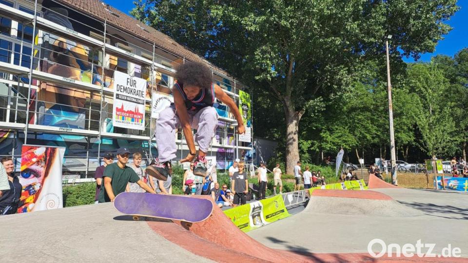 Mit diesem Event ist der noch junge Skatepark beim Weidener Jugendzentrum nun endgültig offiziell eingeweiht. Am Samstag fand dort ein überregionaler Skateboard-Wettbewerb statt. Rund 1000 Zuschauer verfolgten den spannenden Contest, schätzten die Veranstalter. Insgesamt 47 Teilnehmer traten in drei Altersklassen gegeneinander an. Zu gewinnen gab es Preisgelder und Sachpreise im Gesamtwert von 3000 Euro, die der Skitch Skate Shop aus Grafenwöhr als Mitveranstalter zur Verfügung stellte.