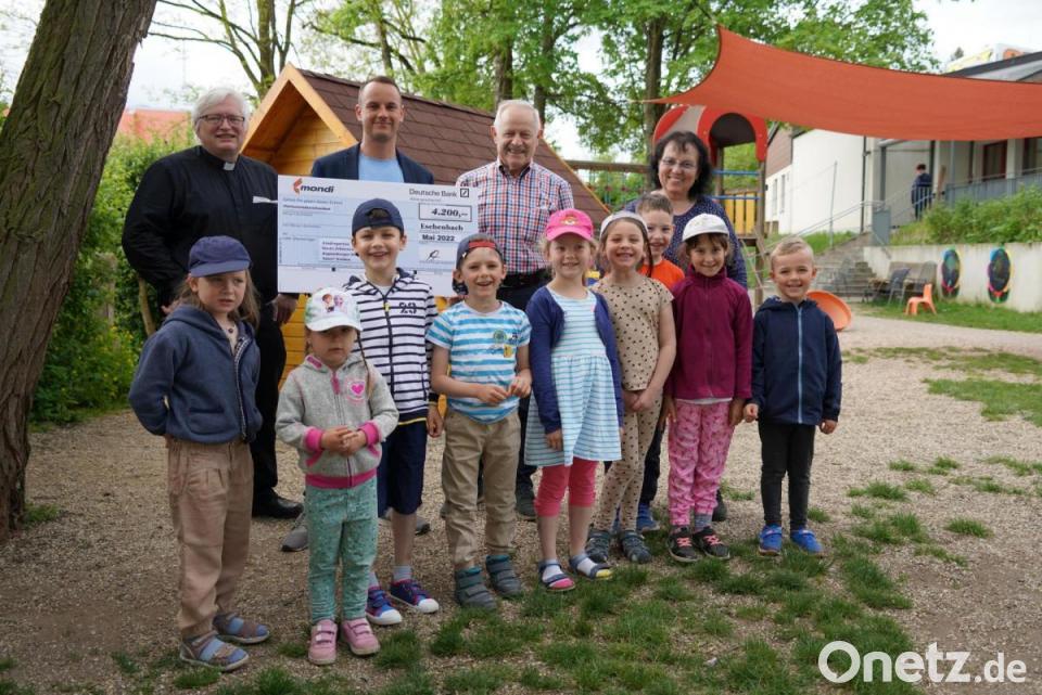 Unter dem Motto „Mondi hilft“ überreichte Herr Raum von der Firma „Mondi“ aus Eschenbach einen Spendenscheck über 4200 Euro an Pfarrer Gottfried Schubach in Weiden. Die Spende ermöglicht dem Kindergarten St. Johannes die Anschaffung eines drehbaren Kletter- und Spielkarussells. Die Kinder und das Team des Kindergartens sind schon voller Erwartung über den Aufbau dieser Neuheit im Spielgarten. Das bisher an gleicher Stelle stehende Klettergerüst Spinnennetz war in die Jahre gekommen und nicht mehr verkehrssicher.