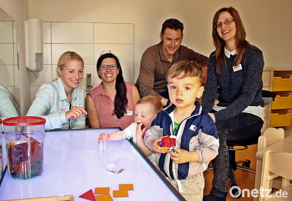 (kzr) Die drei Gruppen der Johanniter-Kinderkrippe am Hammerweg benennen sich aktuell nach den Außenfarben des Gebäudes Grün, Gelb und Rot. Aber das will die Leiterin Sabrina Kraus mit ihrem Personal und in Abstimmung mit den Eltern noch ändern. „Vielleicht geben wir der gesamten Krippe auch einen eigenen Namen“, sagte sie am Tag der offenen Tür. Interessierte Eltern konnten die neue Einrichtung am Freitagnachmittag besichtigen und dem Fachpersonal Fragen stellen. 36 Plätze stehen bereit, die erste Gruppe startet in dieser Woche. Schön ausgestattet sind die Gruppen- und Schlafräume. In jedem der drei Gruppenräume findet sich eine besondere Überraschung. So können sich die Jüngsten mit einem Maler-Atelier beschäftigen. Auf sie warten ein Leuchttisch, dessen Farbexplosion die Kreativität fördert oder auch eine Sandwanne, um die Sinneswahrnehmung zu schärfen. Gruppenübergreifend steht dieses Inventar natürlich allen Kindern zur Verfügung. Im Außenbereich können die Buben und Mädchen am Wasserlauf plantschen oder mit Wasser und Sand arbeiten. Es gibt ein Spielhäuschen, eine Rutsche und eine Vogelnest-Schaukel. „Die Eltern konnten sich heute kennenlernen, das Konzept erklären lassen und die Anmeldung für ihre Kinder gleich aufgeben“, sagte Sabrina Kraus. Reinschnuppern können die Eltern auch bei der offiziellen Eröffnungsfeier am Freitag, 29. Juni.