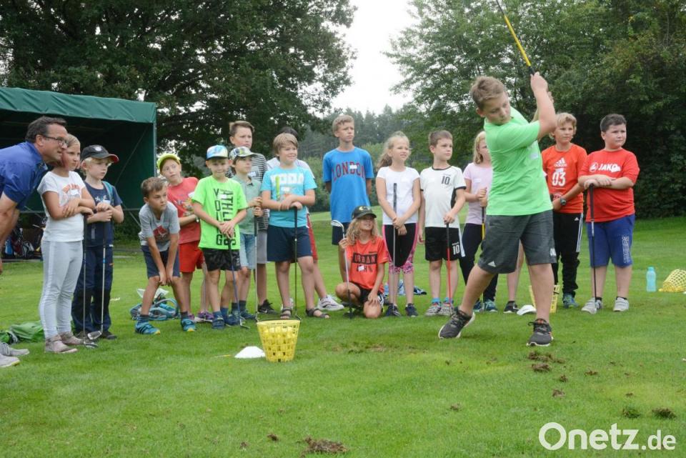 "Fast bis zur Fahne hab ich es geschafft", erzählt die achtjährige Nina stolz. Sie probiert sich mit vielen anderen Kindern an diesem Tag am Golfspielen am Golfclub Schwanhof bei Luhe-Wildenau. Unter fachkundiger Anleitung von Jugendwart Markus Wiederer lernen die begeisterten Mädchen und Buben alles rund ums Driven, Chippen, Pitchen und Putten.