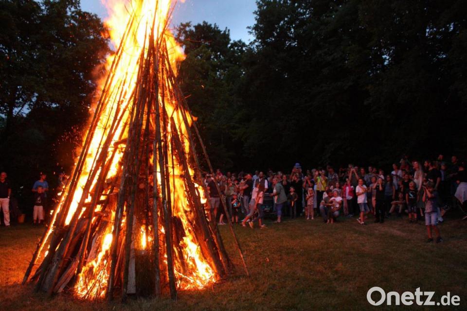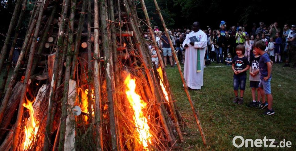 Anfang dieser Woche hatten die Mitglieder der Kolpingfamilie Neunkirchen den Holzstoß unterhalb des Bolzplatzes aufgeschichtet. Am Freitag dann zog die Kolpingjugend mit Fackeln auf den Platz. Ehe das Johannisfeuer angezündet wurde, erinnerte Pfarrvikar Robert Amandu an den Gedenktag des Johannes den Täufer. Das Feuer, das in diesen Tagen angezündet wird, sei Zeichen der Freude, es mache hell und warm. Die Jugendlichen zogen mit den Fackeln zum Feuer und steckten es an, Kolping-Vorsitzender Roland Hoffmann zeigte ihnen, wo das Zeitungspapier und die dürre Streu liegen. Schon nach wenigen Minuten loderte das Feuer. Die ausgeborgten Wasserschläuche der Feuerwehr Neunkirchen kamen nicht zum Einsatz. Die Kolpingmitglieder boten frische Getränke und Spezialitäten vom Grill für die vielen Gäste an, die an den Tischen und Bänken die Geselligkeit pflegten.