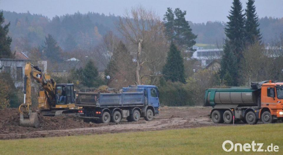 Aus diesem Grund füllen Bagger seit Oktober die Ladeflächen PS-starker Kipper, die zum Leidwesen der Seniorin direkt unter ihrem Balkon vorbeibrummen und trotz provisorischer LKW-Waschanlage den Weg bis zur Friedrich-Ebert-Straße mit einer grauen Brühe überziehen. Der Aushub wird nach Etzenricht gebracht. Die Erdbewegungen würden in diesem Jahr noch abgeschlossen, versprach der Bauleiter.