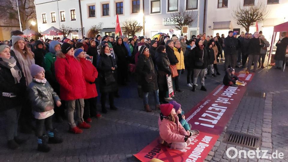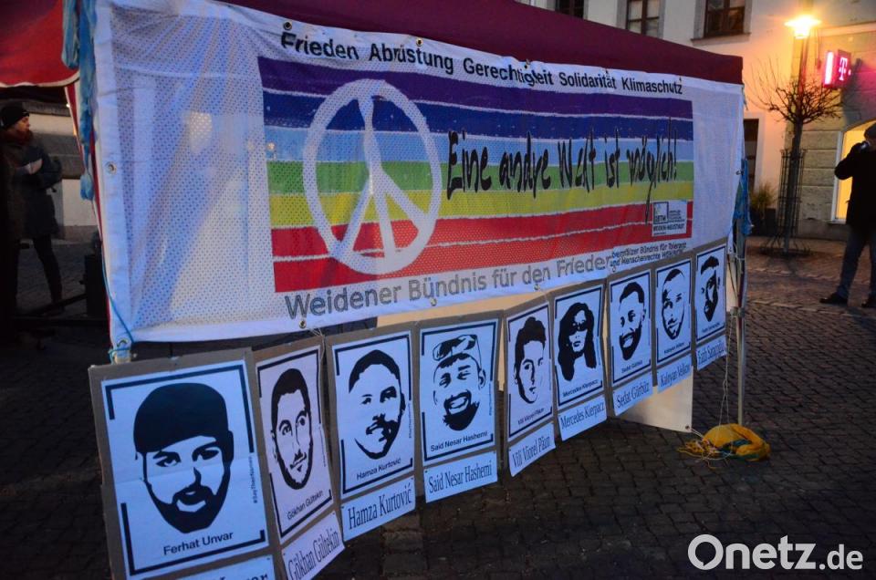 Am Mittwochabend gedachte das Oberpfälzer Bündnis für Toleranz und Menschenrechte der zehn Todesopfer des rechtsextremen Terroranschlags von Hanau vor fünf Jahren. Nach Angaben des Veranstalters versammelten sich 700 Menschen auf dem Oberen Markt. Die Polizei schätzte die Teilnehmerzahl auf 300. Die Temperaturen waren ziemlich kühl. Sieben querstehende Polizeifahrzeuge sicherten die Zufahrtsstellen zur Kundgebung ab. „Omas gegen Rechts“ hielten ihre Schilder hoch, viele mit der Aufschrift „Kein Platz für Nazis“.