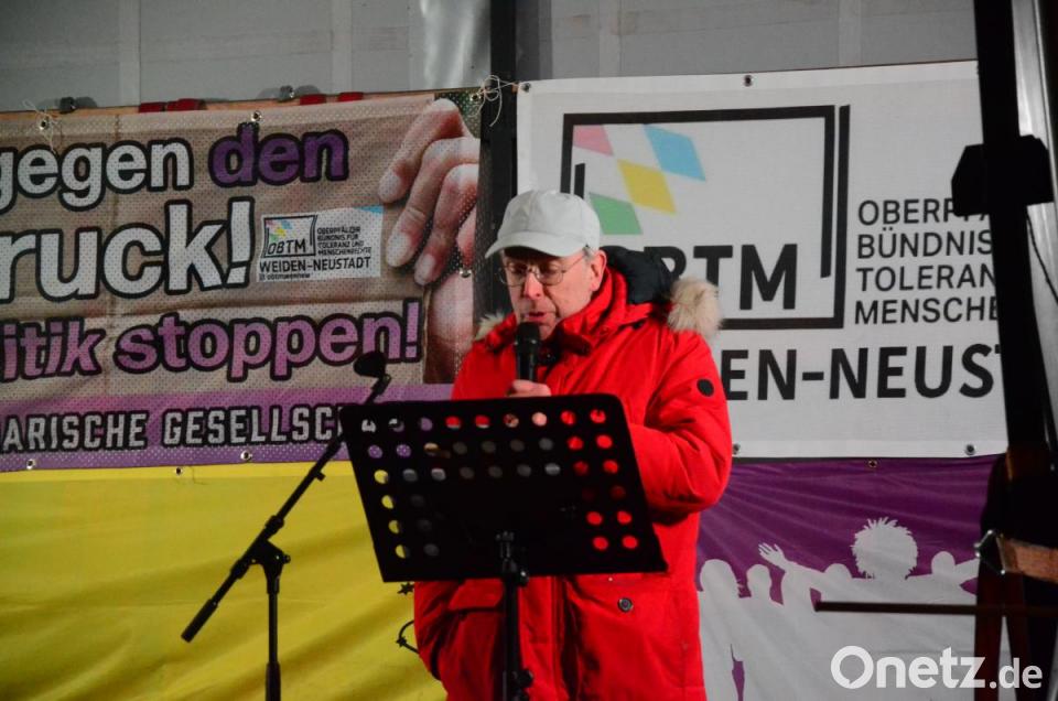 Weiden sei ein leuchtendes Beispiel für ein friedliches Miteinander, sagte er. Hier lebten Menschen aus 120 Nationen zusammen. „Nicht gegeneinander, sondern miteinander.“ Der Oberbürgermeister betonte weiter, Weiden sei wach, bunt und tolerant. Hans-Peter Pauckstadt-Künkler erklärte, es sei endlich an der Zeit, dass sich eine große Mehrheit im Land gegen all die Populisten abgrenze, die meinten, sie sprächen für die schweigende Mehrheit des Volkes. „Die Würde des Menschen ist unantastbar. Auch die Würde von Migranten und ihrer Familien.“