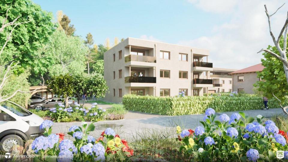 Das Wohnhaus wird bis Mitte 2026 fertiggestellt sein, die schlüsselfertige Übergabe der Wohnungen erfolgt termingerecht an die jeweiligen Eigentümer.