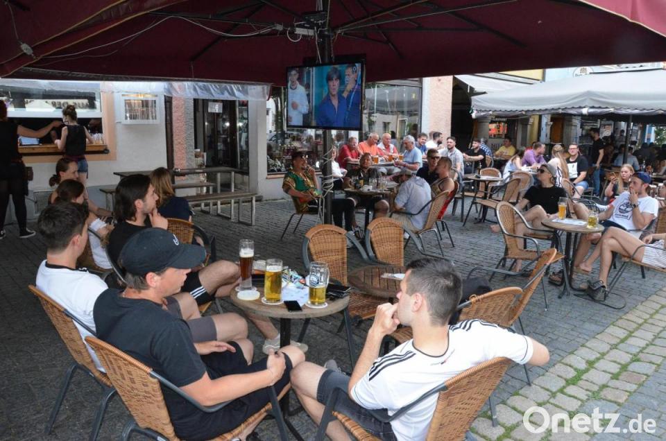 Die Anzahl der Fans in Adler-Trikots hielt sich am Samstag in Grenzen. Nur wenige saßen in den Deutschlandfarben vor den Bildschirmen der Kneipen. Die Public-Viewing-Gäste in der Fußgängerzone zwischen „L’italiano“, „Kir Royal“ und „Pallas“ erschienen in Überzahl – noch – in zivil. Nur einer hatte vier Papierfähnchen wenigstens am Gepäckträger seines Fahrrads befestigt. Nach der Pleite gegen Frankreich vermissten viele noch die große Begeisterung, wie sie bei früheren Fußball-Europa- und Weltmeisterschaften in der Innenstadt hochgekommen war. Während des Spiels ändert sich allerdings die Stimmungslage. Am Mittwoch darf gegen Ungarn wohl mit einem gesteigertem Interesse der Fans gerechnet werden.