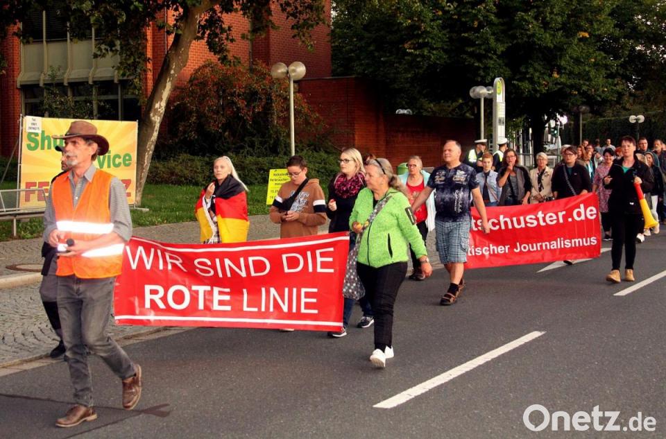 Die Transparente der Teilnehmer vom Montag warben großflächig für die Internetseite eines Journalisten, der als rechtskonservativ eingestuft wird und umstrittene Texte zur Corona-Pandemie veröffentlicht hat. Auf dem Parkplatz Naabwiesen hatte man Bauer und den Demoteilnehmern einen Bereich für eine Kundgebung eingeräumt. Doch lange sollte die nicht dauern, denn wie bei einem "Spaziergang" am Vortag ging es Montagabend noch einmal eine Runde durch die Innenstadt.