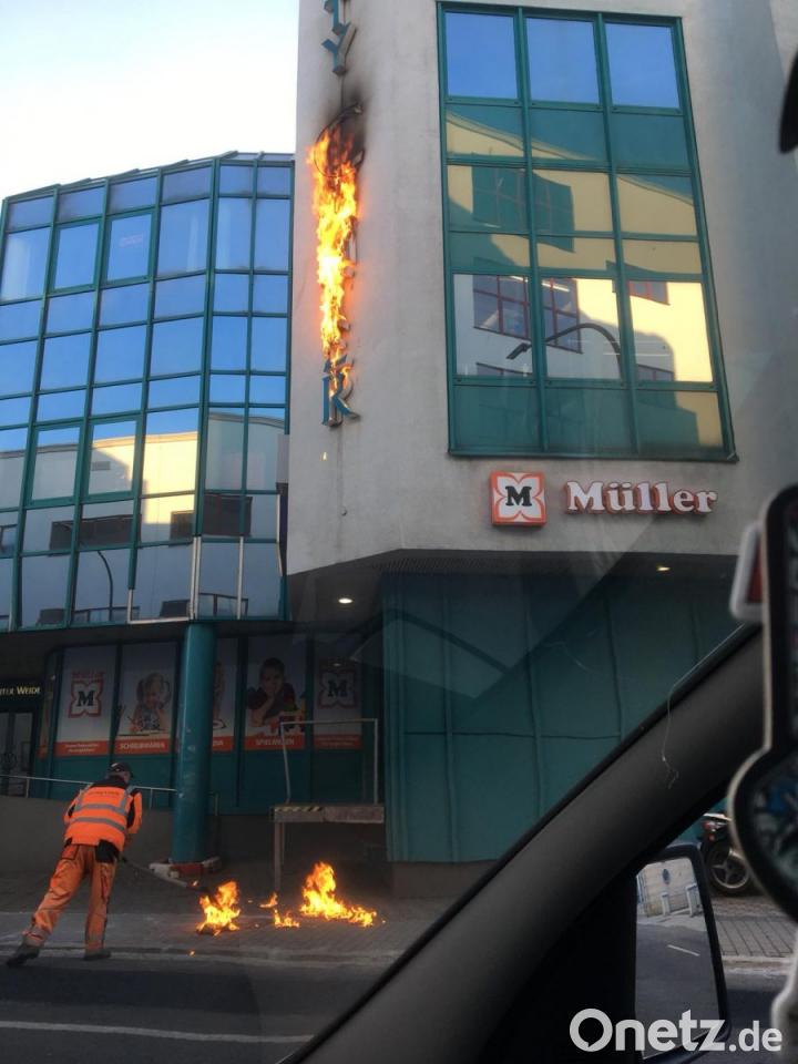Die nichtbrennbare Außenfassade der Verkaufsstätte sowie das schnelle Eingreifen der Feuerwehr verhinderte Schlimmeres. Rasch war die brennend abtropfende Leuchtreklame gelöscht. Mithilfe der Drehleiter kühlten die Feuerwehrleute die Fassade und kontrollierten sie. Der komplette Löschzug der Feuerwehr Weiden mit 16 Kräften war beschäftigt. Der Einsatz dauerte 30 Minuten. Während der Löscharbeiten war die Schillerstraße komplett gesperrt.