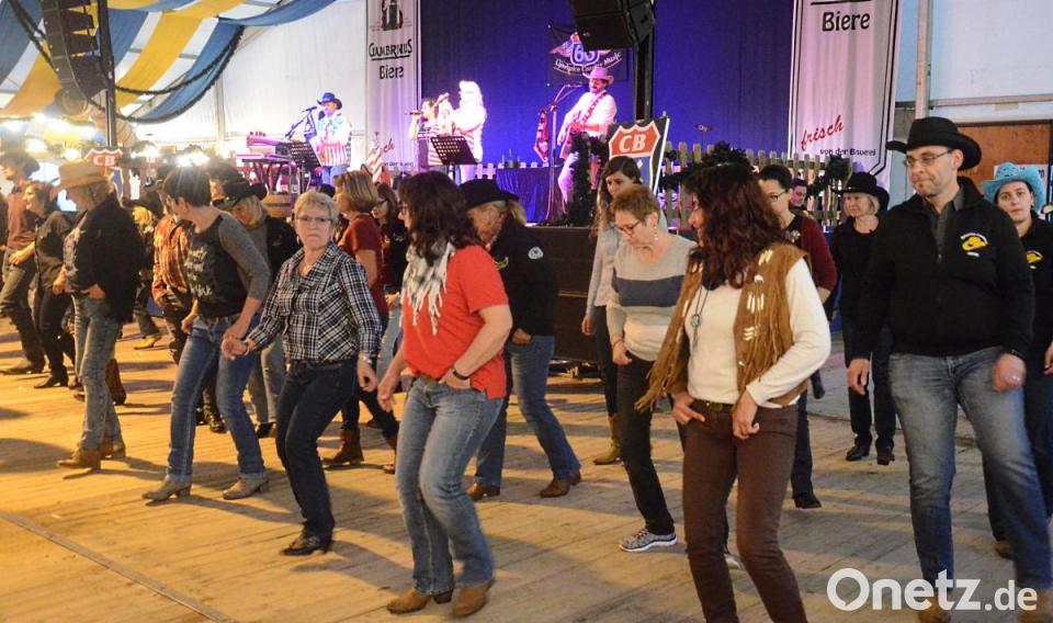 Montagabend war auf dem Weidener Frühlingsfest tote Hose. Eiskalt war es bei Schnürlregen draußen. Aber drinnen im beheizten Bierzelt waren sie aufgereiht wie Perlenketten: die Linedancer. Gleich acht Line-Dance-Gruppen aus der Oberpfalz waren zu Gast bei Gerhard Böckls Countryfest.
