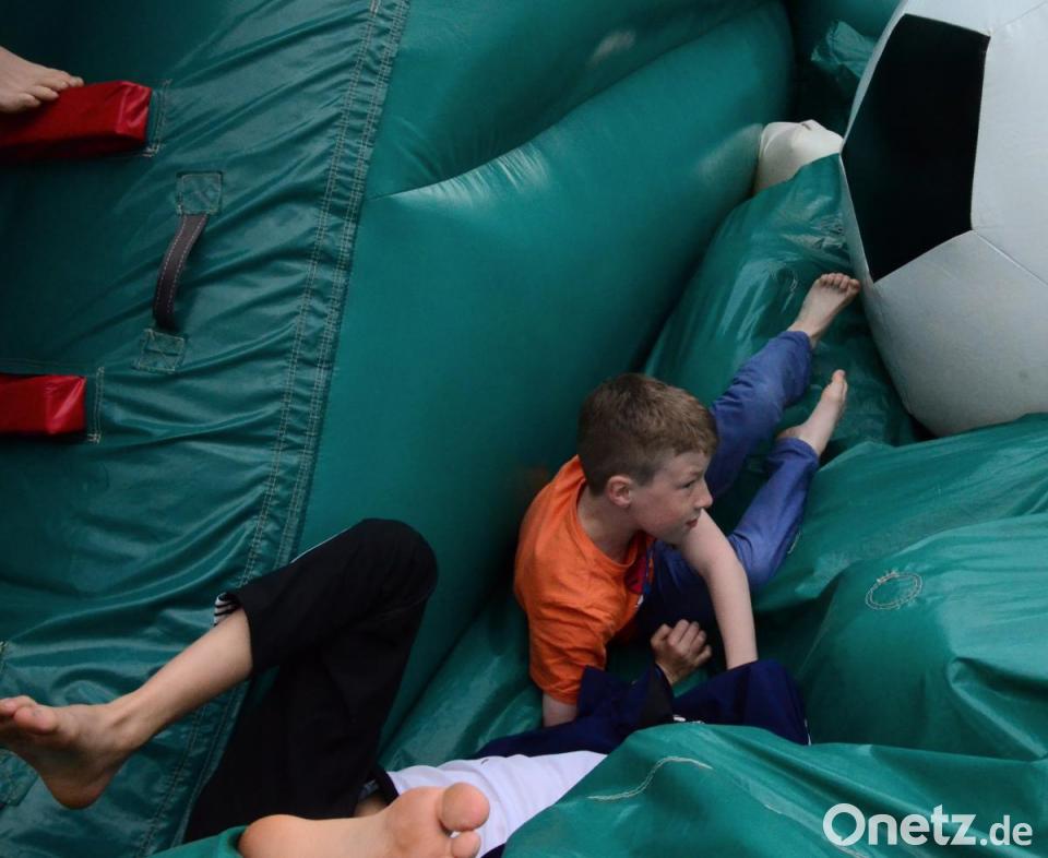 Pünktlich zum Startschuss kam der Regen. Es folgten zwei trockene Stunden bis es um 14 Uhr Regendusche Nummer zwei gab. Kaum waren die Kletter- und Kick- und Sprunggeräte wieder einsatzbereit, kam um 16 Uhr Dusche Nummer drei. Cheforganisator Schieder stand die Mollstimmung wegen der Wetterkapriolen ins Gesicht geschrieben. Schließlich klärten sich Mundwinkel und Himmel in Wohlgefallen auf. Gegen Ende der Veranstaltung mussten die Besucher sogar vom Platz gebeten werden.
