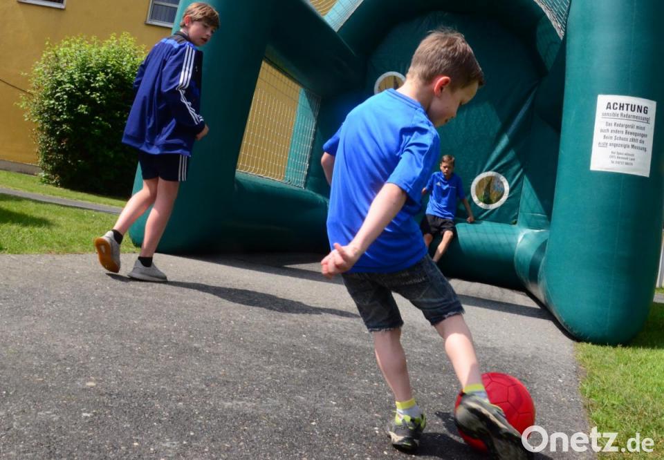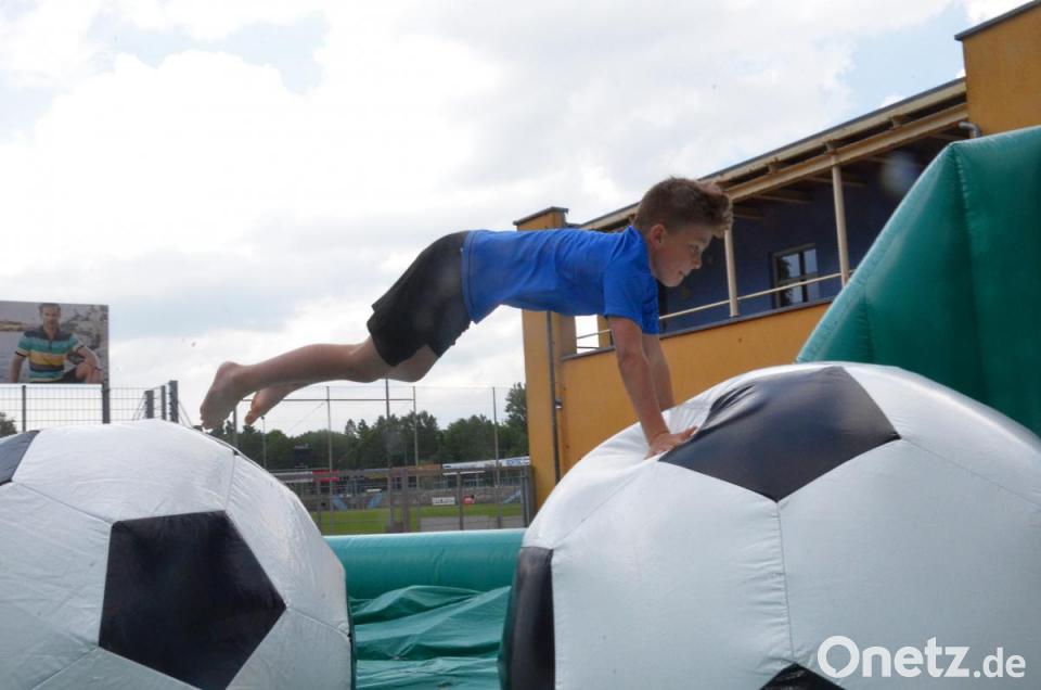 Was wäre das Wasserwerk ohne Fußball. Als Weltneuheit aus Brasilien war „Fußball-Running“ angekündigt. Hier galt es, möglichst geschickt über vier riesige Bälle zu hüpfen, ohne dabei runter zu fallen. An anderer Stelle wurde gemessen, wer den Ball mit größter Geschwindigkeit im Netz versenkte. Leider wurde die Stoppuhr gleich zu Beginn Opfer eines der Nachwuchskicker. Er versemmelte seinen Schussversuch und aufgestellten Chronometer irreparabel gleich mit.