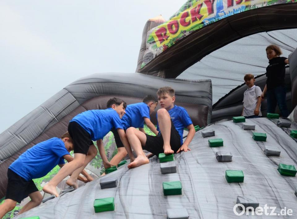 Unterm Strich war’s eine Riesenfete. Klar, die Kinder hatten bei diesem Partyspaß keinen Grund zum quengeln und die Erwachsenen Ruhe, die Zeit an den Biertischen zu genießen. Am stärksten frequentiert war „Rock-Island“ eine aufgeblasene Robinson-Insel mit Kletter- und Rutschmöglichkeiten, die sogar die „Eiger Nordwand“ gleich daneben in den Schatten stellte.
