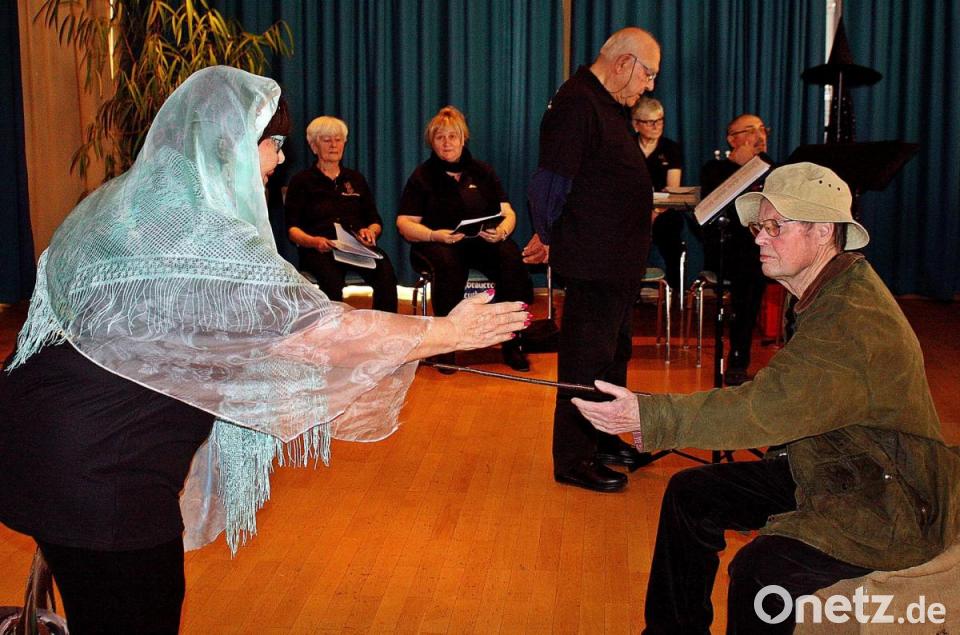 Begrüßt hatte das Instrumentaltrio „Zwischentöne“ mit Elfriede Bühner und Winfried Siller mit dem Geigenspiel und Gerhard Arnold am Cello, wie könnte es anders sein: „Die launische Forelle“ von Franz Schubert. Der Chor der Oldies ließen das Bächlein rauschen, die Theatergruppe spielte den „Fischer“ von Johann Wolfgang von Goethe nach. Dabei ließ sich der Fischer von einer nixenartigen schönen Frau in ihren Bann ziehen.