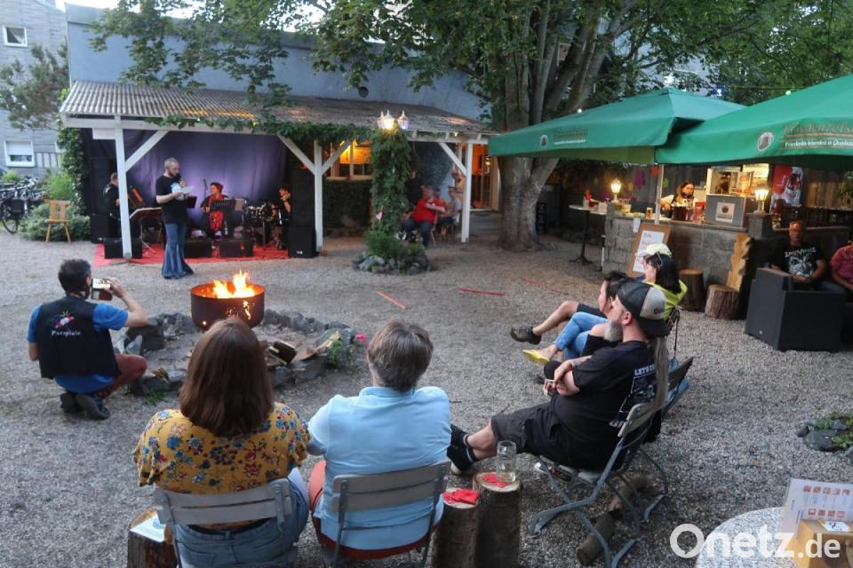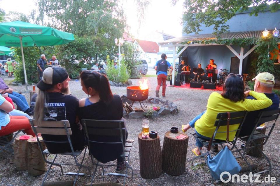 Die Plätze wurden den Gästen zugewiesen. Maskentragen war Pflicht. Nur auf den Plätzen sitzend durfte der Mund- und Nasenschutz abgelegt werden. Die Leute hielten sich alle brav an die Auflagen. Jeder war froh über die Lockerung. Es herrschte eine wunderbare Atmosphäre im neugestalteten Biergarten. Bernd Mende hatte ein prasselndes Lagerfeuer angefackelt. Und die vierköpfige Combo umspielte die Szenerie mit traumverlorenen, jazzig angehauchten Klängen. Musik, die Türen zu einer hoffnungsvolleren Zukunft öffnete.