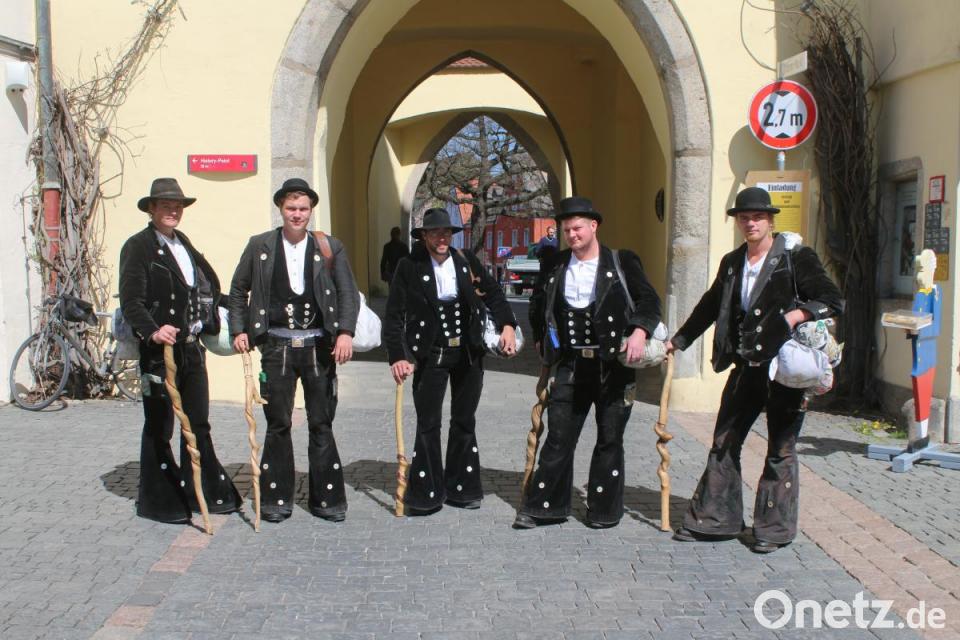 Schwarze Westen, schwarzer Hut, weiße Hemden und weite Schlaghosen: Männer auf der Walz waren in Weiden unterwegs. Die Handwerksgesellen gehören zu den Freien Vogtländern. Diesmal waren sie nicht auf Arbeitssuche, sondern brachten einen ihrer Kollegen nach Hause nach Regensburg, der seine dreijährige Walz beendet hatte. Die fünf Fremden sind viel herumgekommen. Frank stammt aus Ravensburg. Er hat seine drei Jahre auf Wanderschaft bereits hinter sich, möchte aber noch weiterreisen. Ihn haben seine Wege schon bis nach Kuba und Argentinien geführt.