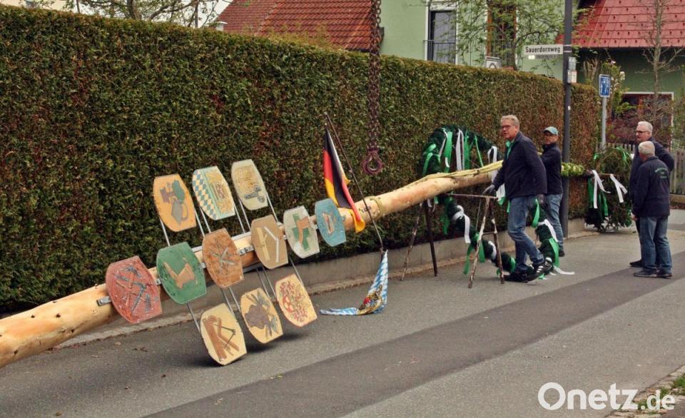 Die Siedlergemeinschaft Waldrast stellte ihren Maibaum auf, nun wehen die Bänder und Girlanden an der Krone wieder über den Weidener Westen. Die Siedlerfrauen und Kinder schmückten die Baumspitze. Muskelkraft wäre zu wenig gewesen, den Baum mit 22 Metern zu heben. Die Firma Einhäupl hilft mit dem Kran schon seit 1989. Beim Bau des Gerätehauses wurde auch eine Stammhalterung eingebaut und der Maibaum wird nun durch die beengte Straßenlage und die nahen Einfamilienhäuser mit dem Kran in die Senkrechte gehoben. Die zehn Helfer aus der Vorstandschaft um zweiten Vorsitzenden Thomas Reich keilten den Baum in die Halterung. Thomas Huber von der Stadtgärtnerei, zugleich Beisitzer im Verein, hatte zusammen mit Förster Wolfgang Winter den baum ausgesucht. Im Anschluss ließen sich die vielen Gäste eine leckere Makrele schmecken. Am Grill brutzelte Harald Quandt mit weiteren Grillkameraden 60 Kilogramm Fisch. Auch Kaffee und Kuchen waren im Angebot.