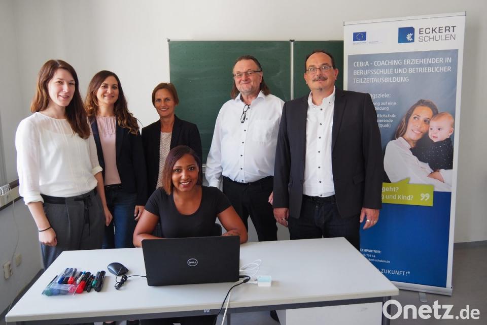 Die junge Mutter ist von Anfang an dabei. „Ganz wichtig ist es für mich zunächst den Quali nachzuholen. Anschließend möchte ich in Teilzeit eine Ausbildung als Einzelhandelskauffrau machen.“ Dass diese Planung umgesetzt wird, dafür sorgen die Kooperationspartner Jobcenter, Eckert-Schulen und Europa-Berufsschule im Projekt CEBrA. Vertreter der drei Institutionen stellten jetzt das Programm vor. Es wird durch Fördermittel aus dem Europäischen Sozialfonds unterstützt. Für Rainer Kern, Standortleiter der Eckert-Schulen in Weiden, geht es darum „auf die individuelle Situation jeder Maßnahmeteilnehmerin ganz genau einzugehen“. Deshalb hat zunächst die Projektphase 1 stattgefunden. Einzelcoaching, Gruppentraining, Eignungsfeststellung und Profiling, aber auch Schnupperpraktika zur Berufsorientierung standen auf dem Programm. Gelernt wurde auch Pünktlichkeit und Zeitmanagement sowie die Arbeit im Team. Auch private Probleme wurden thematisiert, damit ein stabiler Rahmen für eine spätere Teilzeitausbildung entstehen kann. „Nur wenn die persönliche Situation bereinigt ist, kann ein beruflicher Aufbau gelingen“, stellt eKern fest. Sehr wichtig sei auch die Förderung eines Selbstbewusstseins der Teilnehmerinnen. „Kinder groß ziehen ist auch eine Leistung“, sagte Kern.