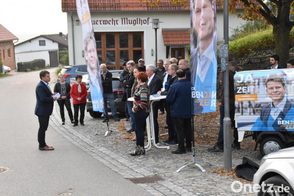 Auf seiner „Zuhörtour“ durch die Stadtteile fuhr CSU-Oberbürgermeisterkandidat Benjamin Zeitler am Dienstag Weidens „schwärzesten“ Außenposten an. Er hörte sich geduldig die Probleme der Bürger. Neben zahlreichen CSU-Mitgliedern waren gut 40 Bewohner aus Muglhof, Matzlesrieth und Trauschendorf zu der Veranstaltung gekommen.