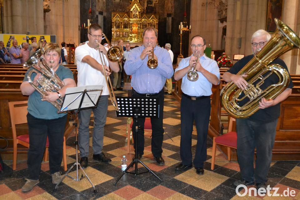 (hcz) Thomas Kreuzer, der Vorsitzende des "Förderkreises für Kirchenmusik in St. Josef", begrüßte am Samstagmittag zur ersten Veranstaltung der Reihe gut 70 Besucher in der Josefskirche. Der Arzt wies darauf hin, dass die Emotionen und Glücksgefühle, die durch Musik ausgelöst werden, auch zu medizinischen Zwecken genutzt würden. Häufig könne das musikalische Erlebnis Heilung bringen. Traditionell eröffnete Kirchenmusikdirektor Hanns-Friedrich Kaiser von St. Michael die Reihe der sommerlichen Konzerte nach dem Mittagsläuten. Das Bläserquintett St. Elisabeth spielte das erste Konzert der Reihe. Rosina Ebneth (Euphonium), Berthold Winterl (1. Trompete), Ernst Ebnet (Tuba), Thomas Winderl (Posaune) und Stefan Müller (2. Trompete) begeisterten mit der Klangfülle ihrer Instrumente im mächtigen Kirchenschiff von St. Josef. Es kamen Werke von Melchior Frank, Johann Pachelbel, Johann Sebastian Bach und Jacob de Haan zu Gehör. Nach dem "Prelude und Scherzo" von Leroy Ostransky zollten die Zuhörer dem eingespielten Ensemble Applaus. Zwischen die musikalischen Blöcke streute Lektorin Maria Spiegler Lesungen aus der Bibel ein. Die nächsten "Punkt 12"- Samstagmittag-Andachten gestalten mit Gesang und Orgel Klara Grusova und Luis Denz am 14. Juli, sowie Eva Danzl und Piotr Pajak am 21. Juli.
