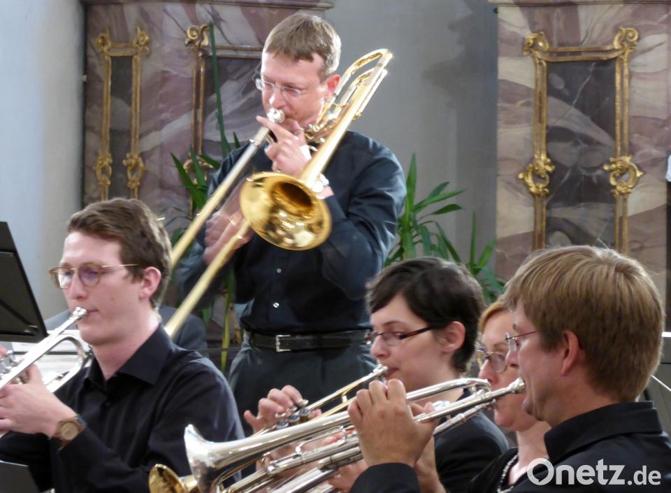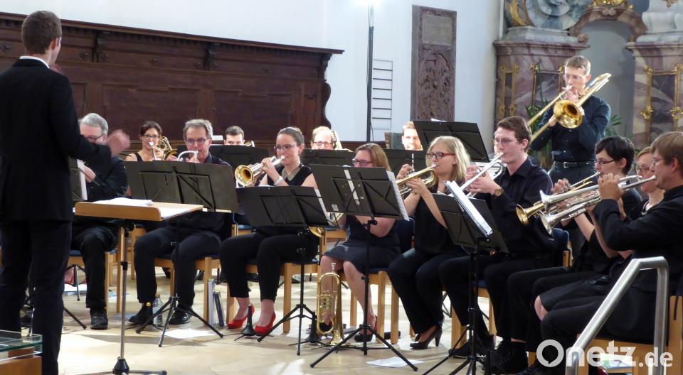 Beim 90-minütigen, abwechslungsreiche Programm wirkte neben den angereisten 23 Musikerinnen und Musiker auch Kirchenmusikdirektor Hanns-Friedrich Kaiser mit. Er begeisterte durch sein virtuoses Orgelspiel mit alter Musik in neuem Gewand bei „Mozart Changes“ des ungarischen Komponisten Zsolt Gárdonyi und mit dem Werk „Introduction und Fuge über die Melodie des 66. Psalms“ aus op. 62 von Samuel de Lange. Abwechselnd mit dem Posaunenchor begleitete er auch die vier Kirchenlieder. Bei „Geh aus, mein Herz“ von August Harder (vor 1813) intonierte der Chor als Vorspiel einen Sommermarsch. „In dir ist Freude“ von Giovanni Giacomo Gastoldi (1591) war ursprünglich ein Tanzlied, zu dem Bertelshofer gekonnt ein paar Takte dieses Sprungtanzes vorführte. „Allein Gott in der Höh sei Ehr“ von Nicolaus Decius (1523) wurde mit einem Orgelvorspiel von Max Regers op. 135a eröffnet und „Lob Gott getrost mit Singen“ aus dem 16. Jahrhundert mit modernem Arrangement dargeboten.