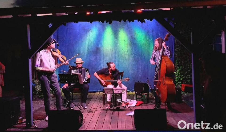 Das Weltmusik-Ensemble Grandessa spielte am Freitag im Weidener "Parapluie" mit großer Sensibilität, vornehmer Zurückhaltung und beachtlicher Virtuosität. Die Gäste im vollbesetzten Biergarten des Kulturbahnhofs hörten alten Jazz, Gypsy-Swing à la Django Reinhardt, südosteuropäischer Folkore sowie Klezmermusik, teilte das Parapluie mit. Auch Musette, Tango bis hin zu Chanson waren an diesen lauen Sommerabend im Biergarten, der mit bunter Beleuchtung und Feuerstelle das Zuhören noch romantischer machte, zu hören.