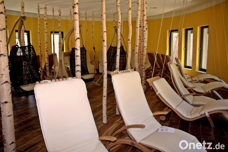 Klaus Kunz, Rainer Heinold, Abteilungsleiter Freizeit, und Abteilungsleiter Jürgen Lehner, zuständig für Abwasser und Technik, führten in den Saunabereich. Hier wurden in der „Weidensauna“ die Bänke komplett erneuert. Derzeit läuft auch die Sauna auf 80 Grad. Aus der finnischen Sauna im Außenbereich wird die „Wurzelsauna“. Neu ist auch die „Kräutersauna“, im Kupferkessel wird hier ein Aufguss mit getrockneten Kräutern möglich sein. Dazu gesellen sich die „Birkensauna“ und der neue Ruheraum, der im ovalen Rund beim „Schneckenhaus“ den Blick auf die tausend Quadratmeter Saunagarten freigibt. Auch die Landschaft zeichnet sich durch ovale Formen aus, ob im Rasen, den dekorierten Kiessteinen oder der Teichanlage.