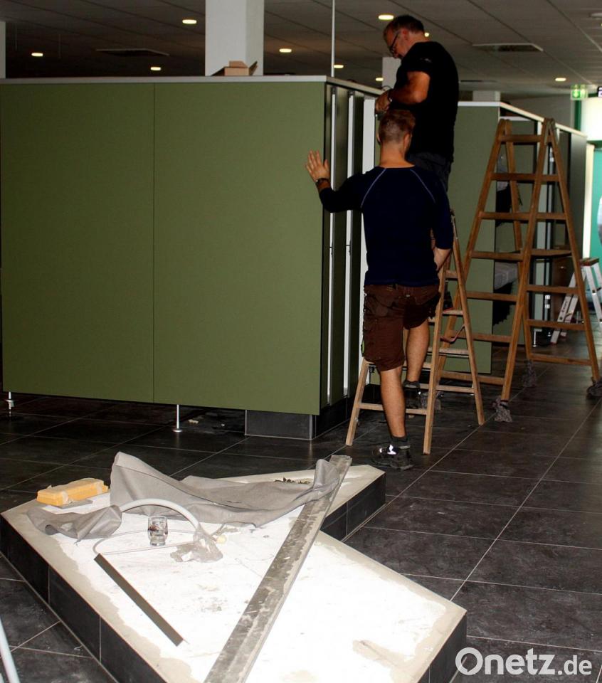 Zuvor gab es schon einen kleinen Einblick, auch wenn die Pflanzinseln noch ohne blühendes Beiwerk sind. Aus den künstlichen Palmen wird nun echte Natur. Bevor es jedoch so weit ist, wurde in den vergangenen Tagen gründlich gereinigt. Außerdem bauten die Verantwortlichen mit viel Holz und Pflanzen vom Eingang bis hin zu den Umkleidebereichen in verschiedenen Grüntönen. Mit dem Transponder geht es durch die Kasse, bargeldlos wird groß geschrieben. Auf einem Rundgang durch die Thermenwelt zeigt Leiter Klaus Kunz die Umkleideschränke, den Hauptumkleidebereich, die jetzt nicht mehr durch schmale Gänge erreicht werden. Die Türen sind in hellem Grün, sie schließen die Kabine ab. Die Besucher müssen sich nicht mehr durch eine weitere enge Tür zu den Kleiderschränken schieben. Einzelkabinen, Familienkabinen und größere Kabinen für Sammelumkleiden oder Rollstuhlfahrer stehen zur Verfügung. Neu sind auch die langen Schränke. Der Transponder zeigt in der Kasse etwaige Fehlbedienung an, dann gibt's Hilfe.