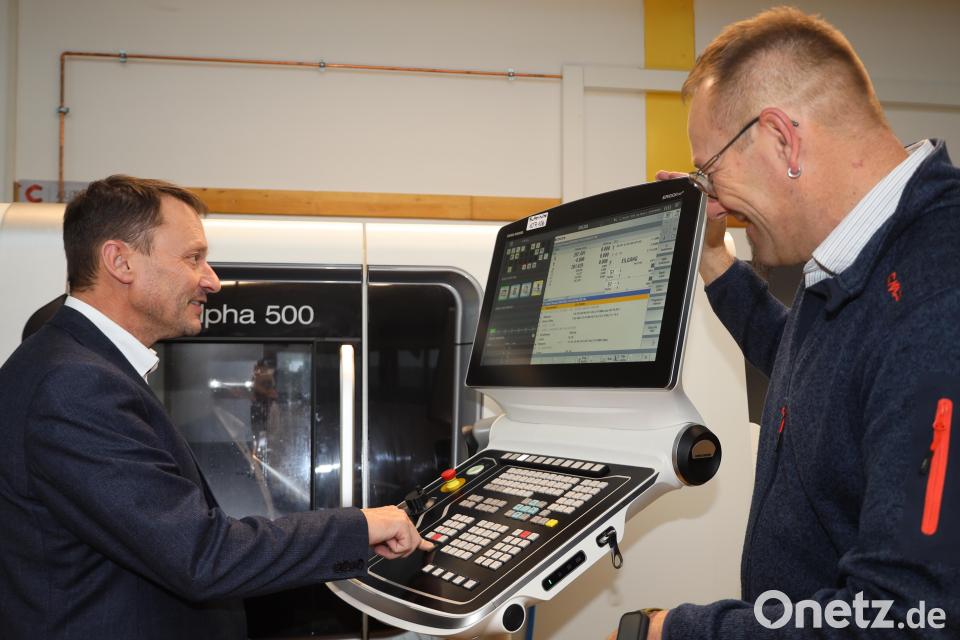 Wie die CNC-Maschine funktioniert, veranschaulichte Teamkoordinator und Zerspanungsmechaniker Thomas Glaser bei der Herstellung eines Metall-Kerzenständers inklusive Gravur. "Die Maschine kann jede beliebige Form auf ein Hundertstel Millimeter genau herstellen. Hierbei geht es also vor allem um Präzisionsarbeit." Ab Donnerstag wird die Maschine im Unterricht eingesetzt.