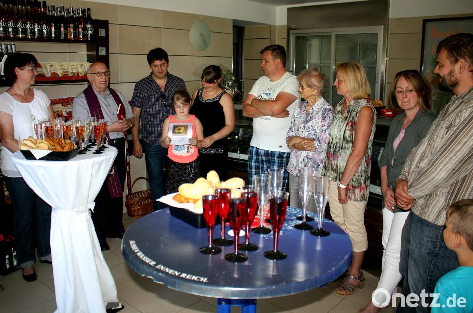 (kzr) Ruhestandspfarrer Andreas Hanauer aus Schirmitz erteilte dem Laden den kirchlichen Segen. Familie, Freunde und Mitarbeiter wohnten der Einweihungsfeier bei. Ehefrau Tanja Schedl führt das Geschäft. Pfarrer Hanauer hatte das Paar getraut, nun segnete er das Geschäft der Eheleute und die Menschen, die da ein und aus gehen. „Ihr habt euch getraut, nun traut ihr euch diese Filiale zu betreiben", gratulierte er dem Ehepaar.