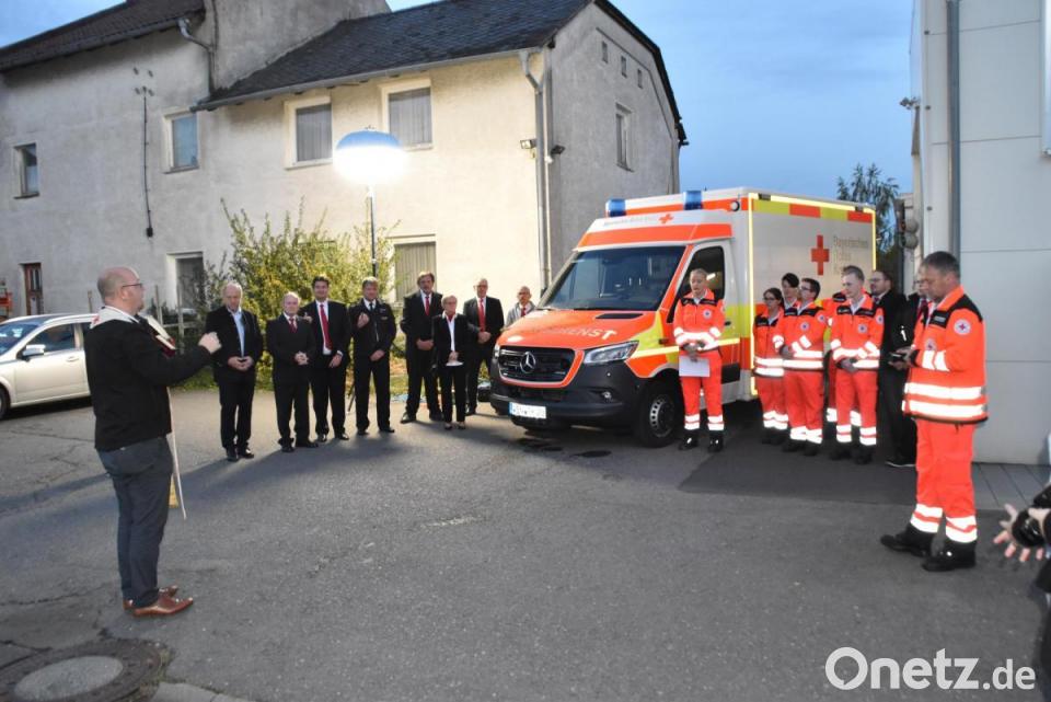 Dekan Johannes Lukas und Pfarrer Hans- Martin Meuß erbaten den göttlichen Segen für das neue Rettungsfahrzeug. Denn: „Neben einem Haufen Technik muss auch der Herrgott mitspielen“, so Stadtpfarrer Lukas.