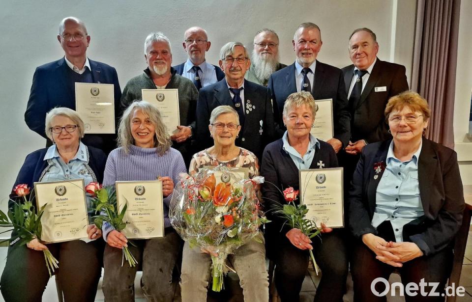 Zudem ehrte Vorsitzender Ferdinand Sabathil Mitglieder für ihre Verdienste mit dem Ehrenkreuz 2. Klasse, an Johanna Schiller, und dem Ehrenkreuz 1. Klasse, an Andrea Klein. Das Treuekreuz erhielten Petra Brunner, Ottmar Brunner, Wolfgang Gleissner, Anton Schlosser und Doris Weiss. Den Erinnerungskrug für den enormen Arbeitseinsatz überreichte der Vorsitzende an Johann Klein und Karl Lang. Für langjährige Mitgliedschaft ging die Urkunde für 45 Jahre an Gertrude Stock, für 35 Jahre an Alfred Schmitz und für 25 Jahre an Dominik Klein. Zwei Jahrzehnte ist Barbara Weiss dabei, und zehn Jahre sind Hans Blum und Raphael Klein Mitglied.
