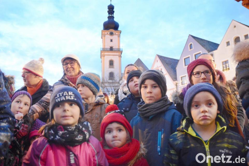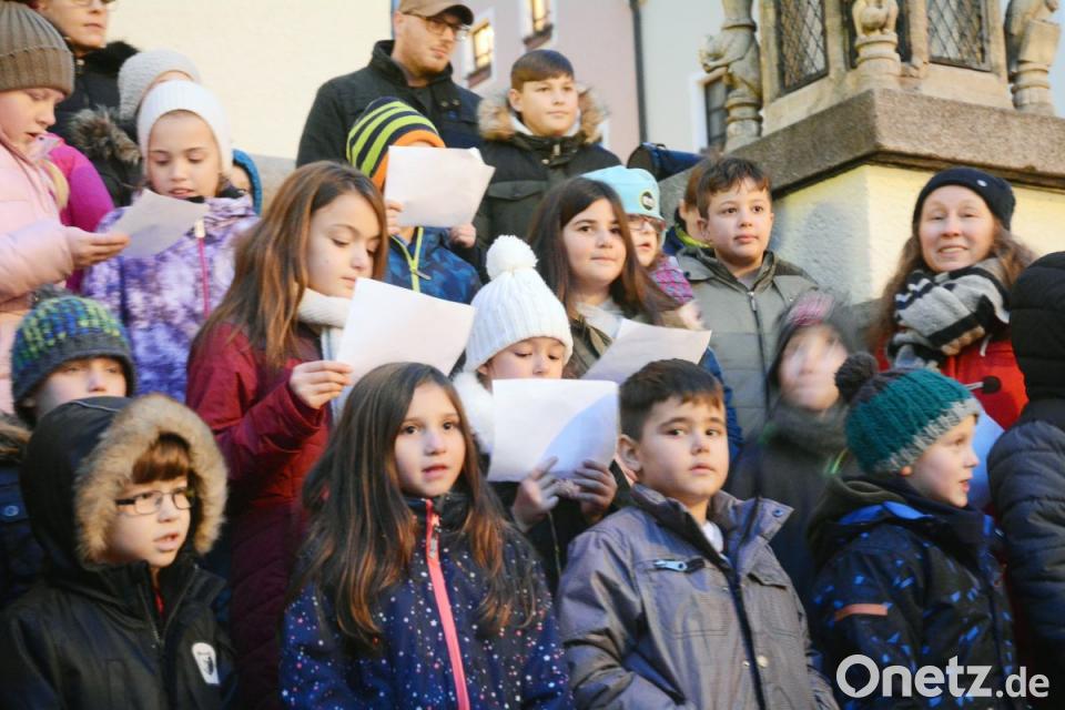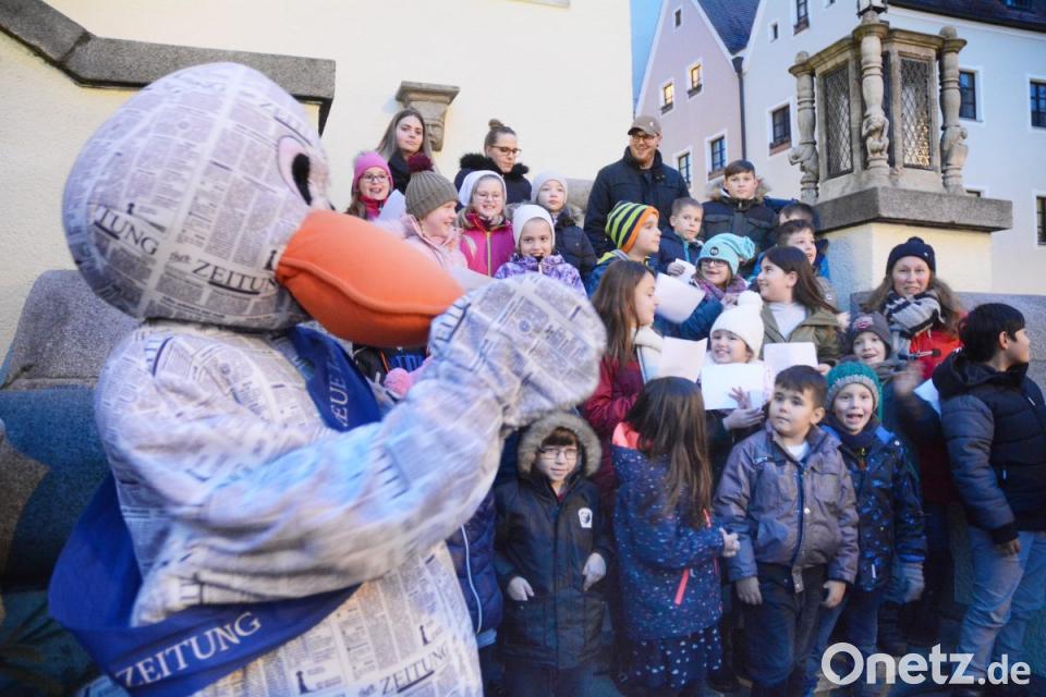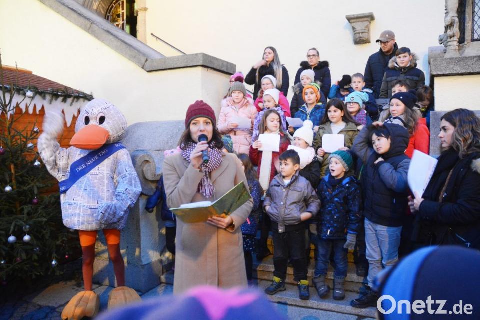 Am Adventskalender im Alten Rathaus in Weiden ist das fünfte Fenster geöffnet. Dafür sorgten am Mittwochabend Zeitungsente Paula Print, das Stadtmarketing, der Kinderhort St. Anton und der Nikolaus mit zwei Engelchen.
