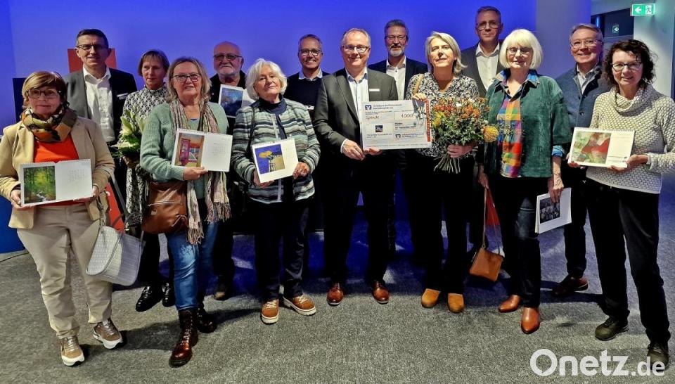Auch bei der 18. Edition des Kalenders hatte Mitarbeiterin Sieglinde Joisten mit den Verantwortlichen des OKV das Projekt im Blick. Nun wirkte sie zum letzten Mal mit. Sie verabschiedet sich im kommenden Jahr in den Ruhestand. Als Dank dafür gab es für Joisten einen Blumenstrauß und viel Applaus. Wolf überreichte an den Verein und Vorsitzende Fritz einen bunten Strauß und dazu einen Scheck über 1000 Euro.
