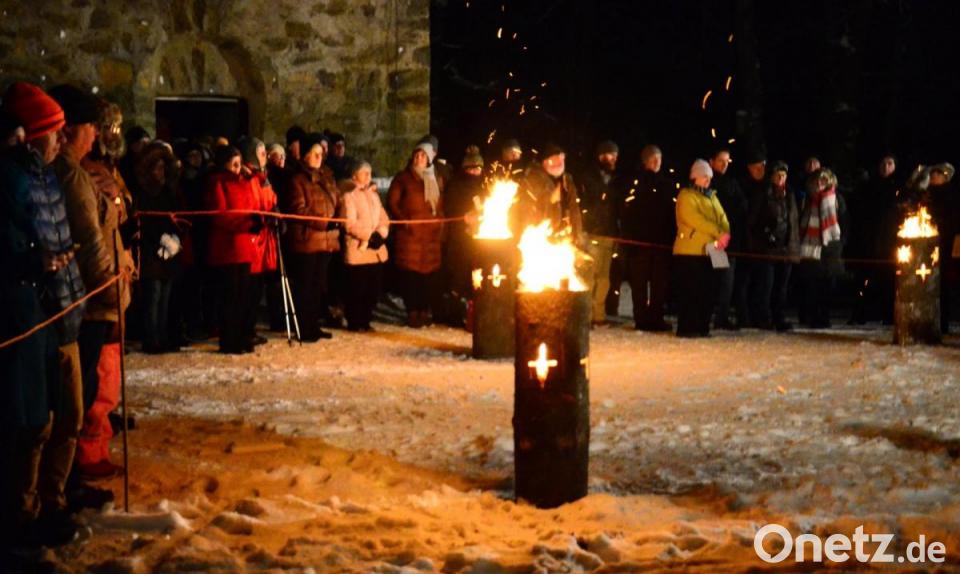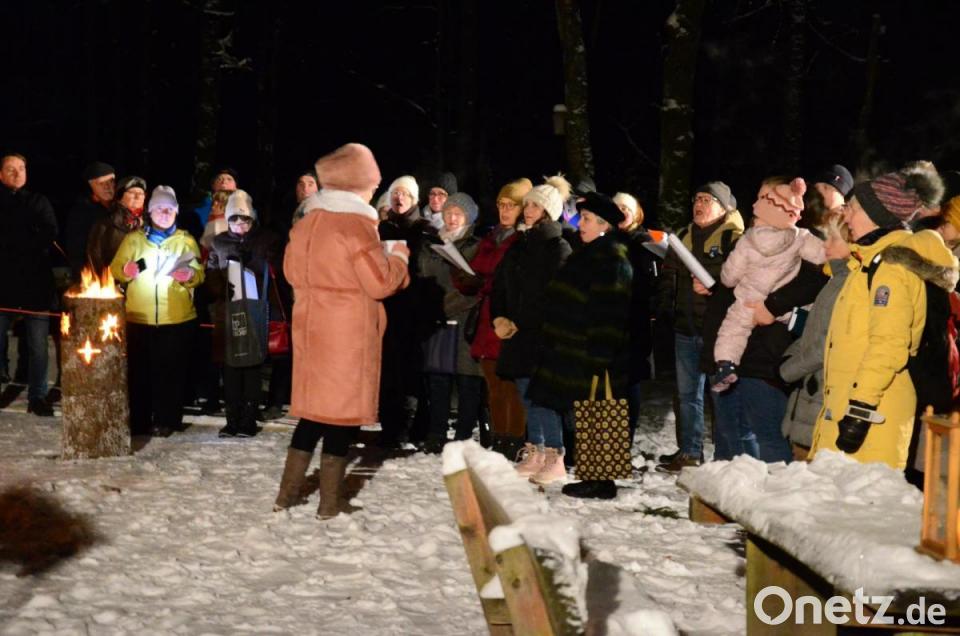 Bei acht Grad Minustemperatur hatten die Schwedenfeuer auf dem verschneiten Fischerberg nur Symbolcharakter. Dem Oberpfälzer Waldverein, Zweigverein Weiden, ging es am Sonntagabend auch nicht um Wärme. Im Mittelpunkt der adventlichen Gedanken stand heuer bei der "Waldweihnacht" unterm Vierlingsturm das Licht, in Kurzgeschichten vorgetragen von Edith Schimandl und Georg Hüttner.