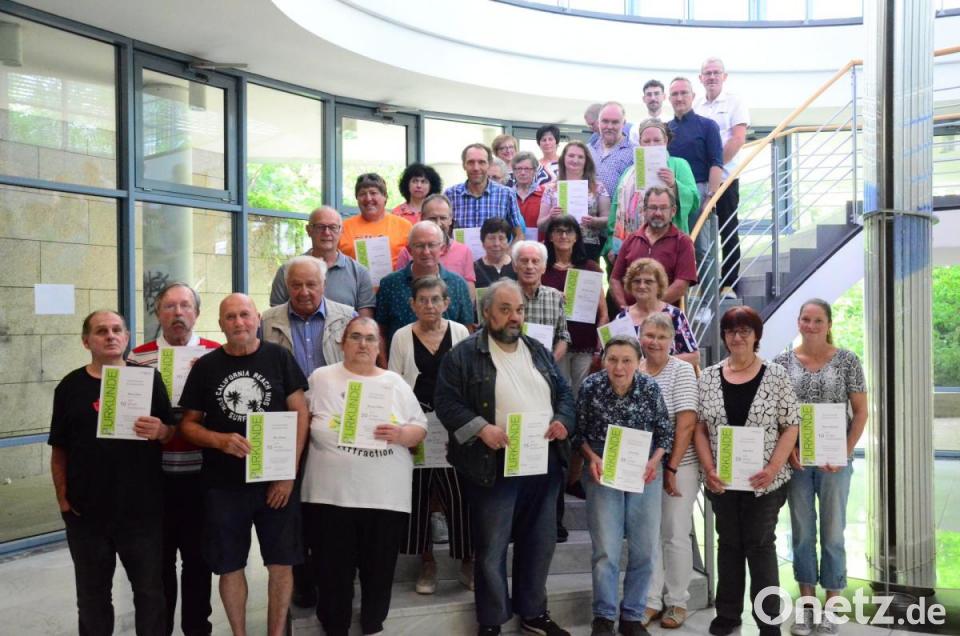 Für 15 Jahre Josef Bauer (Namsenbach), Rosina Bergler (Konradsreuth), Norbert Demleitner (Pfreimd), Alfons Dobmann (Hub), Günter Gerber (Leichau), Max Grünauer (Kaimling), Andreas Kraus (Weiden), Martina Moller-Prischenk (Altköslarn), Edmund Scheck (Waldthurn), Petra Speckner (Schlammersdorf), Thomas Wolf (Feilersdorf) und Christa Zeus (Waldsassen). Für zehn Jahre Martin Bauer (Weiden), Sabine Geigenmüller (Thurndorf), Joachim Hirmer (Wernberg-Köblitz), Margarete Lorenz (Weiden), Nicole Scharnagl (Weiden), Josef Silleurzer (Pleußen), Manfred Weiß (Floß), Hans-Georg Weß (Weiden), Johann Wittmann (Friedersreuth) und Gertraud Wurzer (Kleinschwand).