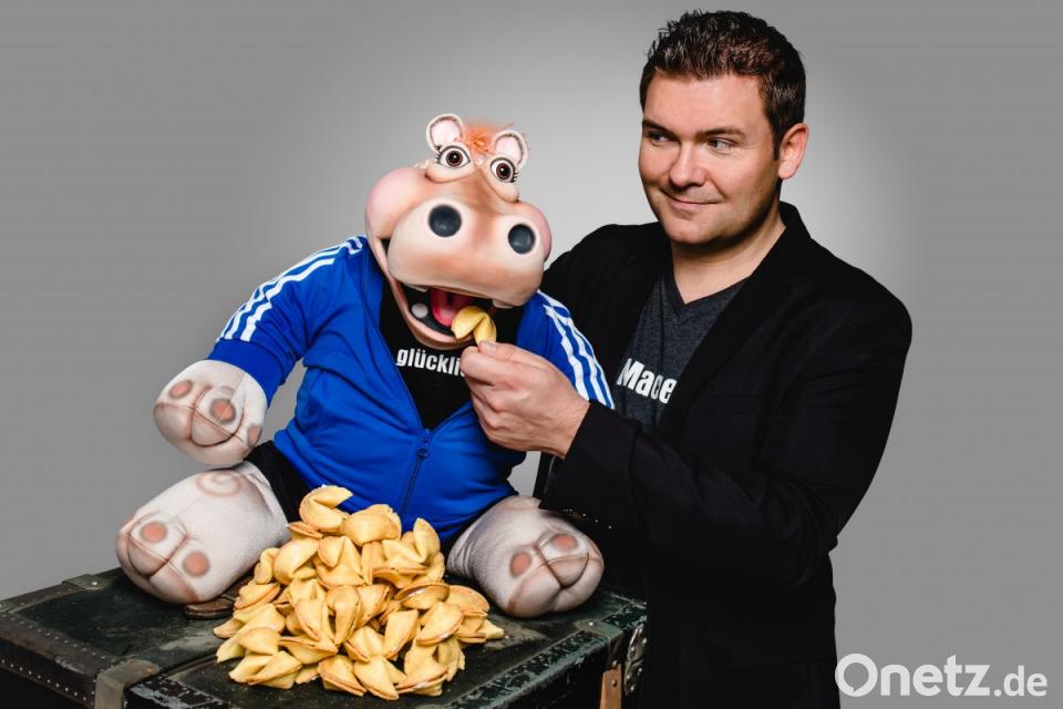 Sebastian Reich setzt zu einer Erklärung an: "Ein Glückskeks ist ein Keks, der ist gefüllt mit ..." "Mit Schokolade!", grätscht Amanda dazwischen. "Da ist keine Schokolade drin", verbessert Sebastian. "Dann macht's mich auch nich' glücklich", sagt das Nilpferd. Bauchredner Reich kommt mit seiner frechen Freundin Amanda am Freitag, 28. Dezember, um 20 Uhr in die Max-Reger-Halle. Oberpfalz-Medien verlosen Tickets.