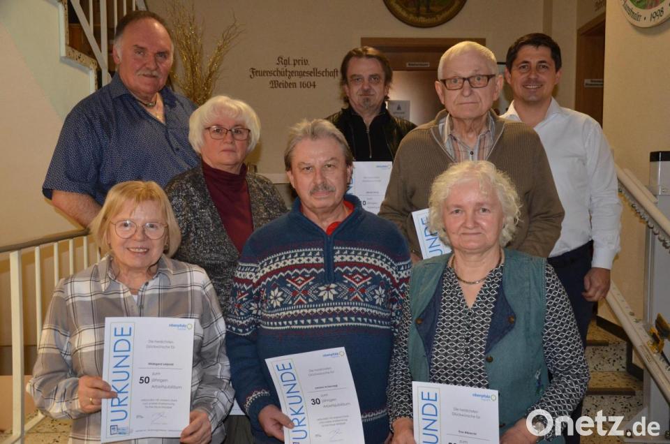 Für 50 Jahre Dienst erhielten Hildegard Leipold (Rotzendorf) und Eva Albrecht (Rothenstadt) besondere Anerkennung. Seit 30 Jahren ist Johann Scharnagl (Weiden) im Einsatz. 25 Jahre dabei ist Sonja Käß (Oberwildenau). Auf 20 Jahre bringen es Marianne Lindner (Wendersreuth) und Franz Brandl (Tännesberg). Für 15 Jahre wurden Paul Olbort (Weiden), Diana Bauer (Vohenstrauß), Angelika Schindler (Oed/Altenparkstein) und Karoline Vogl (Meisbrunn) geehrt. Seit 10 Jahren tragen Ramona Giehl (Neustadt), Harald Kres (Unterwildenau), Bernhard Schrödl (Unterlind), Gabriele Soppart (Pirk), Johann Striegl und Eleonore Sparrer (beide Weiden) die Zeitung zuverlässig aus.