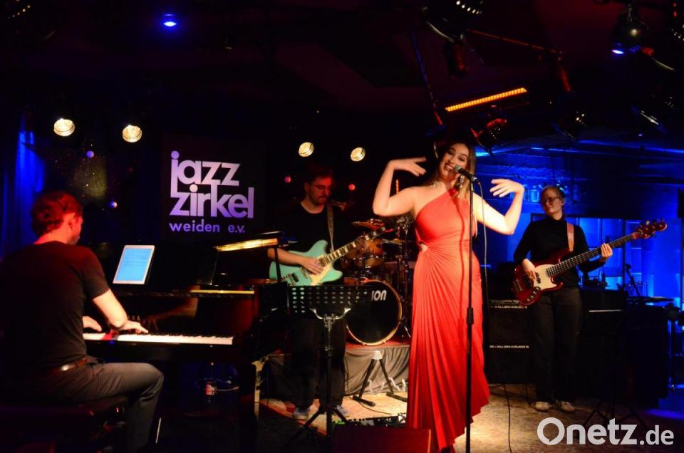 Dass sie sich auch von einem Stromausfall nicht irritieren lässt, bewies die junge Künstlerin nach der Pause, als plötzlich Licht und Ton im Jazz-Keller weg waren. Unplugged sang sie ein Lied nur mit Klavierbegleitung so bravourös, dass es kaum auffiel, als Scheinwerfer, Gitarre und Bass wieder einsetzten. Das Publikum dankte es ihr mit viel Beifall.