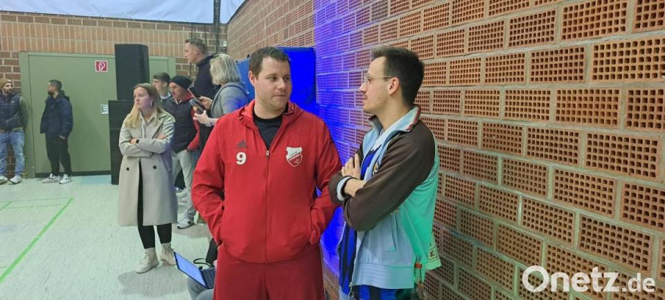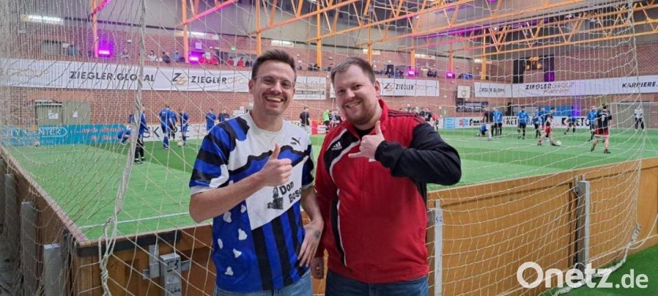 Julian Trager (l) und Matthias Schecklmann - zwei aktive Fußballspieler aus der Region und die Moderatoren des "Fehlpass"-Podcasts beim Ziegler-Group-Karriere-Cup.