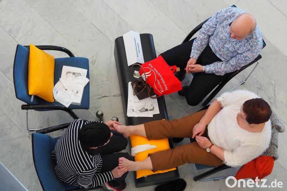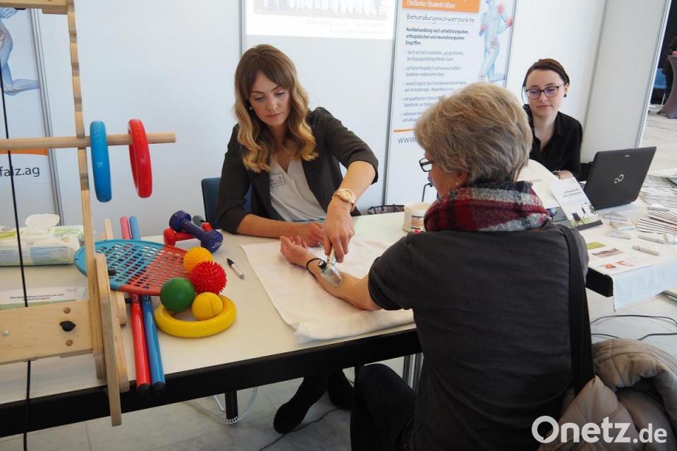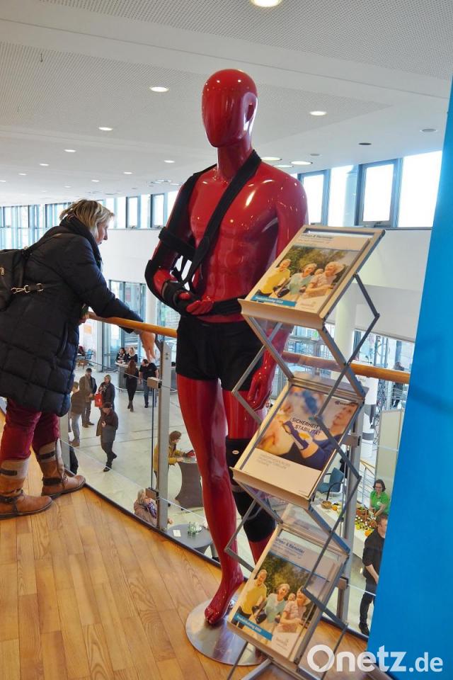 Die Verbindung von Theorie im Vortrag und praktischer Anwendung im Ausstellungsbereich galt für fast alle Themen, die am Orthopädietag vorgestellt wurden. So unter anderem auch für das von Facharzt Dr. Gottfried Hör im Vortrag über Ellenbogenerkrankungen und ihre Therapiemöglichkeiten. Überbeanspruchung wie beim sogenannten Tennisarm lösten meist Entzündungen und kleine Einrisse am Ellbogengelenk aus, stellte der Experte fest. Oft ist auch eine schleichend sich entwickelnde Arthrose Anlass der Beschwerden. Fast alle konservativen Therapien und Hilfestellungen, die Dr. Hör vorstellte, konnten dann auch an den Ausstellungsständen konkret kennengelernt werden. Vorgeführt wurden unter anderem die Stoßwellen- und Lasertherapie und fast sämtliche Arten von Bandagen.