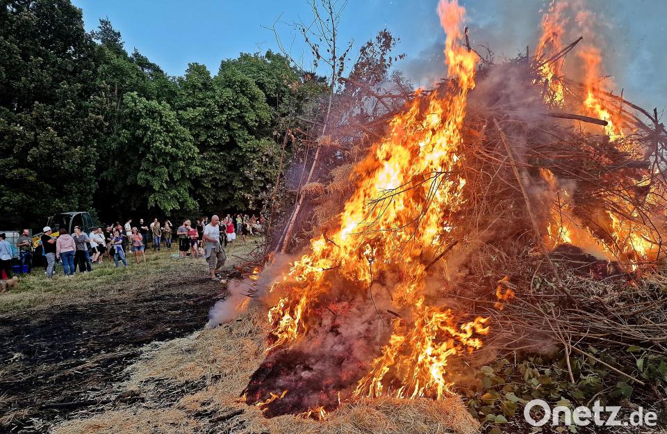 Ruhestandsgeistlicher Andreas Uschold hielt die Feuerrede und verwies auf Johannes den Täufer und den damit verbundenen Brauch. Dann segnete er die Menschen und weihte mit Weihwasser den zum zweiten Mal aufgestapelten Holzhaufen, den Alois Lukas und die Helfer dann entzündeten. Für die Besucher gab außerdem Getränke und Bratwürste.