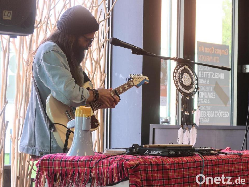 Unter dem Motto „Playing for Peace“ reist der Ukrainier Sergej Onschenko durch Europa, um mit seinen Benefizkonzerten für die Ukraine Spenden zu sammeln. Vergangene Woche gastierte der auf der Insel Bali lebende Künstler in der Coffee Lounge an der OTH Amberg-Weiden, wo er auf Einladung des Kompetenzzentrums Bayern, Mittel- und Osteuropa sein kostenloses „Make Like a Tree“-Konzert spielte. Mit den Spenden aus seinem Auftritt werden medizinische Dinge und Hygieneartikel für die ukrainischen Hochschulpartner gekauft und von diesen Partnern im Landesinneren verteilt. Onschenko, ein Musiker und bildender Künstler, kombinierte seinen Gig aus „ambient Folk“ mit Fotografien aus der Ukraine.