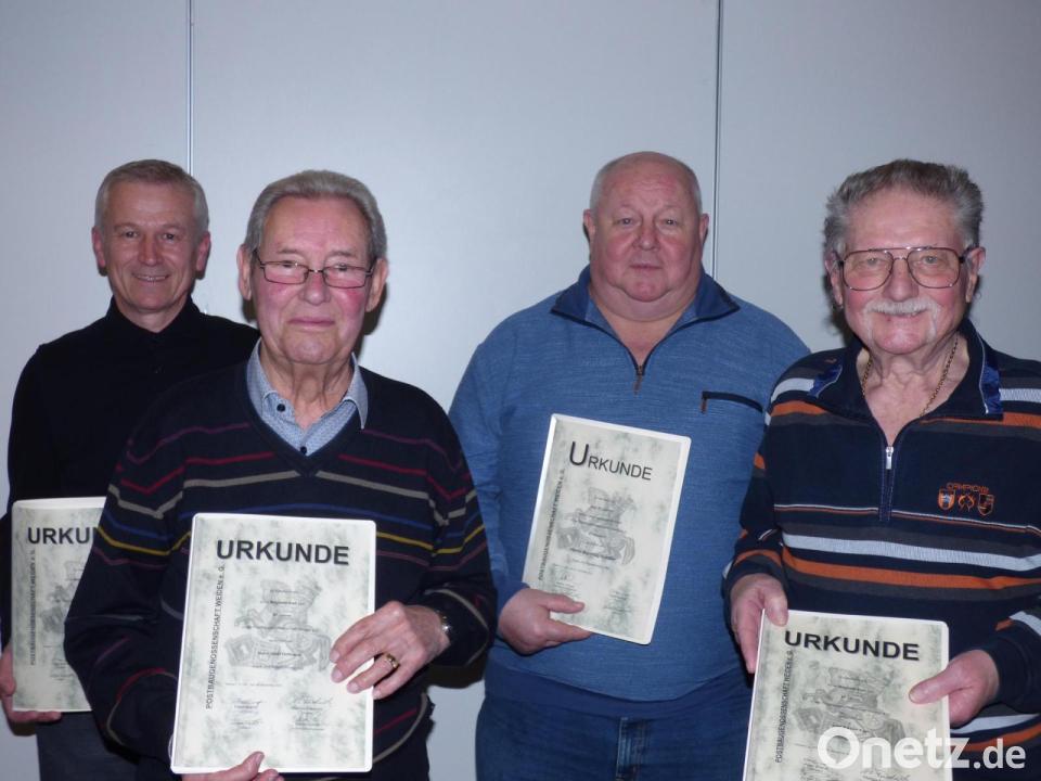 Im Anschluss folgte die Ehrung langjähriger Mitglieder. Da die bisherige Ehrenordnung nur bis 50 Jahre Mitgliedschaft berücksichtigte, wurde sie eigens erweitert – gleich drei Mitglieder feiern inzwischen über 60 Jahre Zugehörigkeit: Anna Lärmer, Josef Hoffmann und Herbert Eger. Für 25-jährige Mitgliedschaft wurden Raimund Wenzl und Werner Hammerl geehrt. Manfred Schiller wurde für zehn Jahre Hauswartstätigkeit gedankt, und das Hausmeisterehepaar Adelka und Simo Frankovic wurde in den Ruhestand verabschiedet. Scharl schloss die Mitgliederversammlung mit dem Hinweis, dass die Postbaugenossenschaft im kommenden Jahr 100-jähriges Bestehen feiern wird.