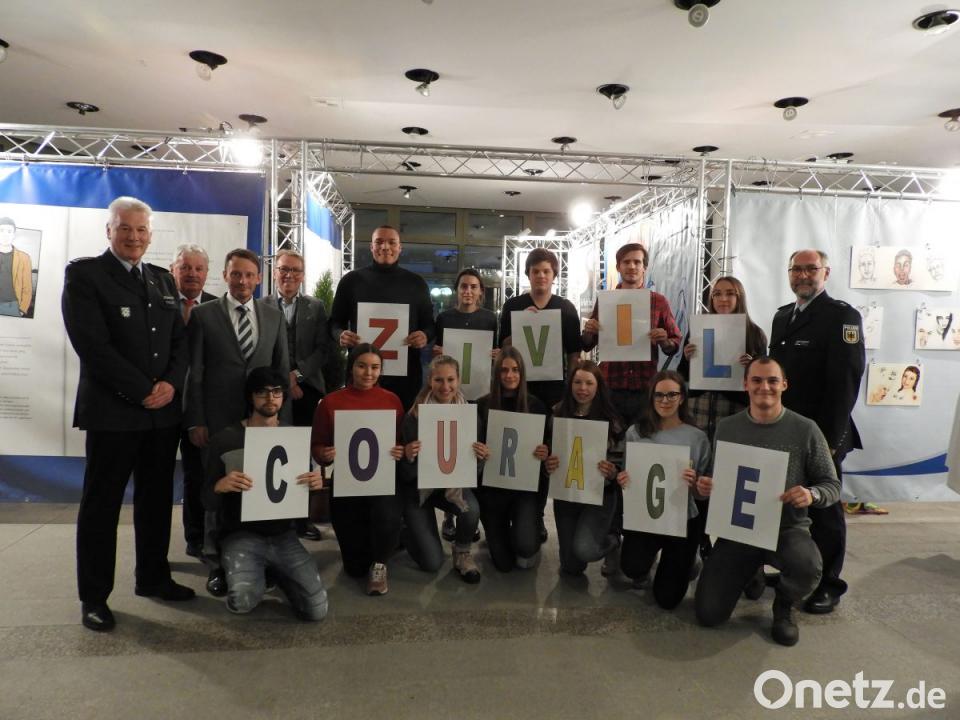 „Zivilcourage“ war das Thema, mit dem sich die Augustinus-Gymnasiasten des gleichnamigen P-Seminars auseinandersetzten. Unter Anleitung des Sozialkundelehrers Florian Köhler haben sie eine Performance erarbeitet, die bei der Ausstellungseröffnung im Rampenlicht stand. Schlagwörter wie Zuhören, Initiative, Vernunft, Respekt oder Offenheit ergaben am Ende den Begriff „Zivilcourage“. Dass die Besucher „gelebte Prävention hautnah erleben konnten“, dafür dankte Franz den Schülern. Sein Dank galt auch der Stadt und der Polizeiinspektion Weiden für die ungewöhnlich aufgeschlossene und unterstützende Zusammenarbeit.
