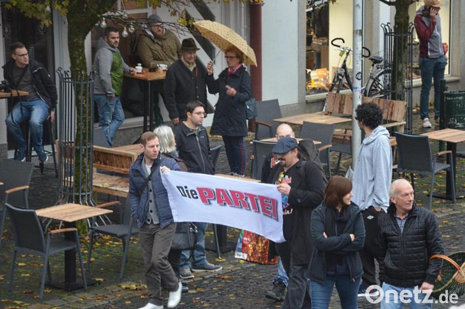 Eine Gruppe von ebenfalls angemeldeten Gegendemonstranten von „Die Partei“ wurde von der Polizei auf den Schlörplatz verwiesen. „Wir treten heute gegen die Verdummung der Oberpfalz an“, sagte dort ihr stellvertretender Vorsitzender Matthias Völkl. Die „Fridays for Future“-Leute hatten eine Gegendemo abgelehnt, weil sie Bauer keine Plattform geben wollten.